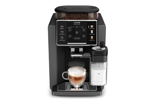 Krups EA910E10 – Machine à café à grains reconditionnée – Machine à café à grains automatique reconditionnée par Créma : contrôles complets, nettoyage, remplacement des pièces d’usure si nécessaire.